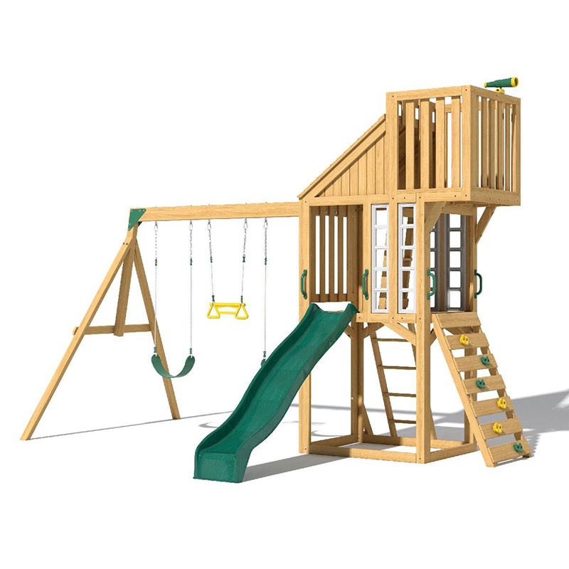 Đu quay bay cao: Hai chiếc xích đu nặng nề và một chiếc xích đu khỉ mang đến niềm vui đu đưa cho tối đa 3 đứa trẻ cùng một lúc.