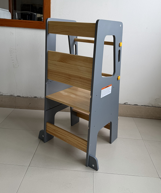 Ghế đẩu bước tăng trưởng dành cho trẻ em của WIDEWAY này là một sản phẩm được tùy chỉnh dành cho khách hàng của chúng tôi đến từ Nigeria. Nó có thiết kế chặn màu bằng gỗ màu xám, kết hợp tính thẩm mỹ và kết cấu. Cấu trúc bậc thang với các thanh chắn có thể điều chỉnh giúp cân bằng giữa niềm vui và sự an toàn, giúp trẻ dễ dàng tiếp cận những vị trí cao hơn và tham gia độc lập vào các hoạt động hàng ngày như tương tác trong bếp và rửa bát, bồi dưỡng tính độc lập thông qua luyện tập. Được làm bằng gỗ nguyên khối được chọn lọc và các tấm ván thân thiện với môi trường, sản phẩm chắc chắn, bền và vô hại, đồng hành cùng trẻ em từ trẻ mới biết đi cho đến trẻ nhỏ. Với thiết kế và chất lượng tuyệt vời, sản phẩm này đã giành được sự ưu ái của khách hàng Nigeria. Đó là một thành tựu khác của WIDEWAY trong việc mở rộng thị trường nước ngoài và là sự phát triển thiết thực và ấm áp trong nước.